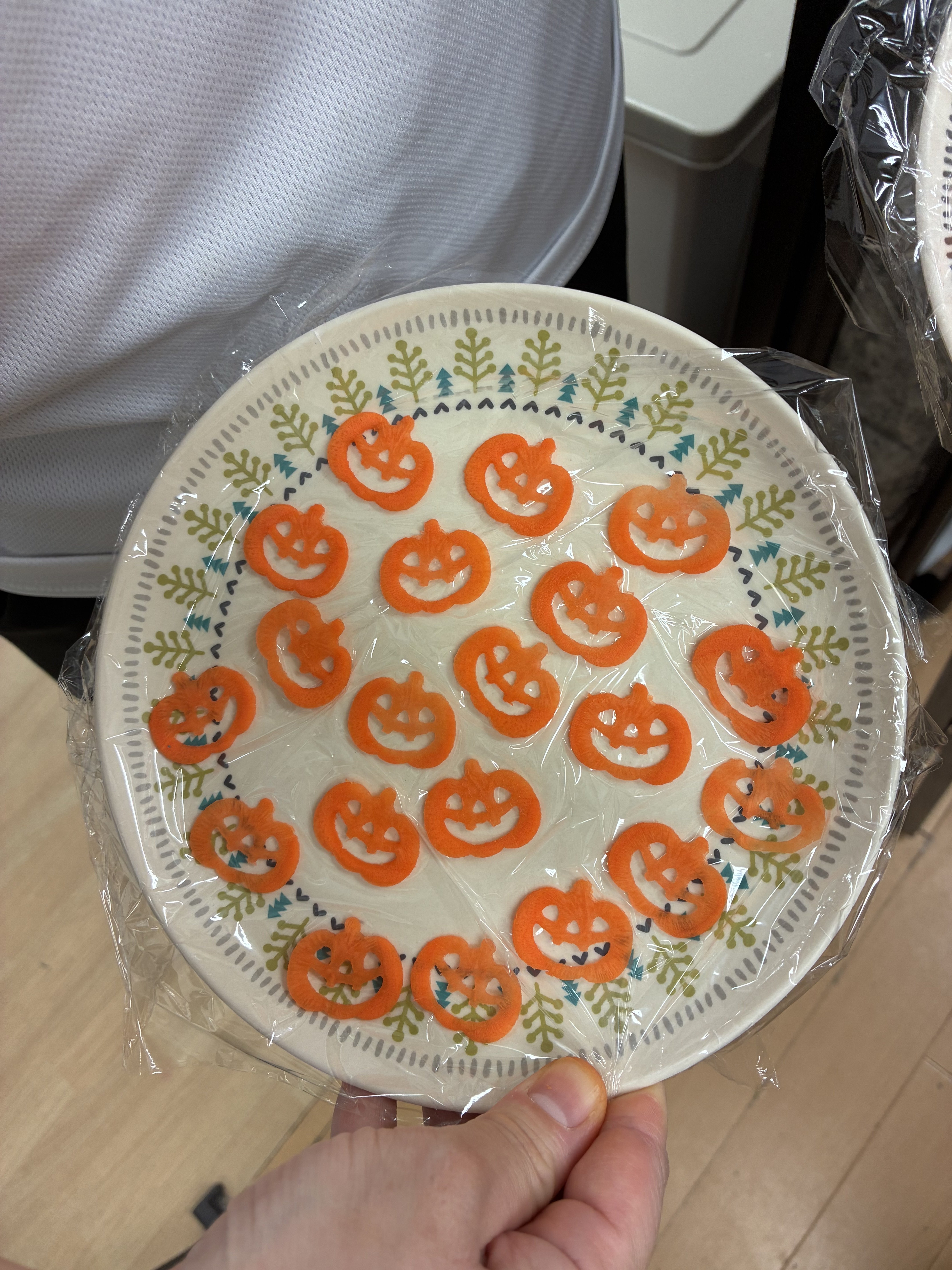 その一つですが、サラダにトッピングするカボチャ型の人参☆