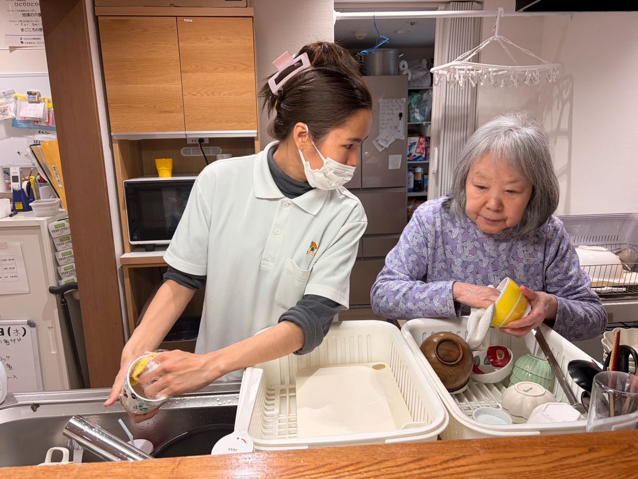 今日は、私が食器を洗っていると、I.T様が隣に来て、「私もやるよ」と食器を拭くの