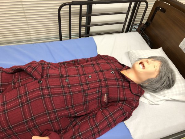 衣類交換やおむつの交換、トイレ介助などをペアを変えたり、パターンを変えたりしながら、ひたすら練習しました。