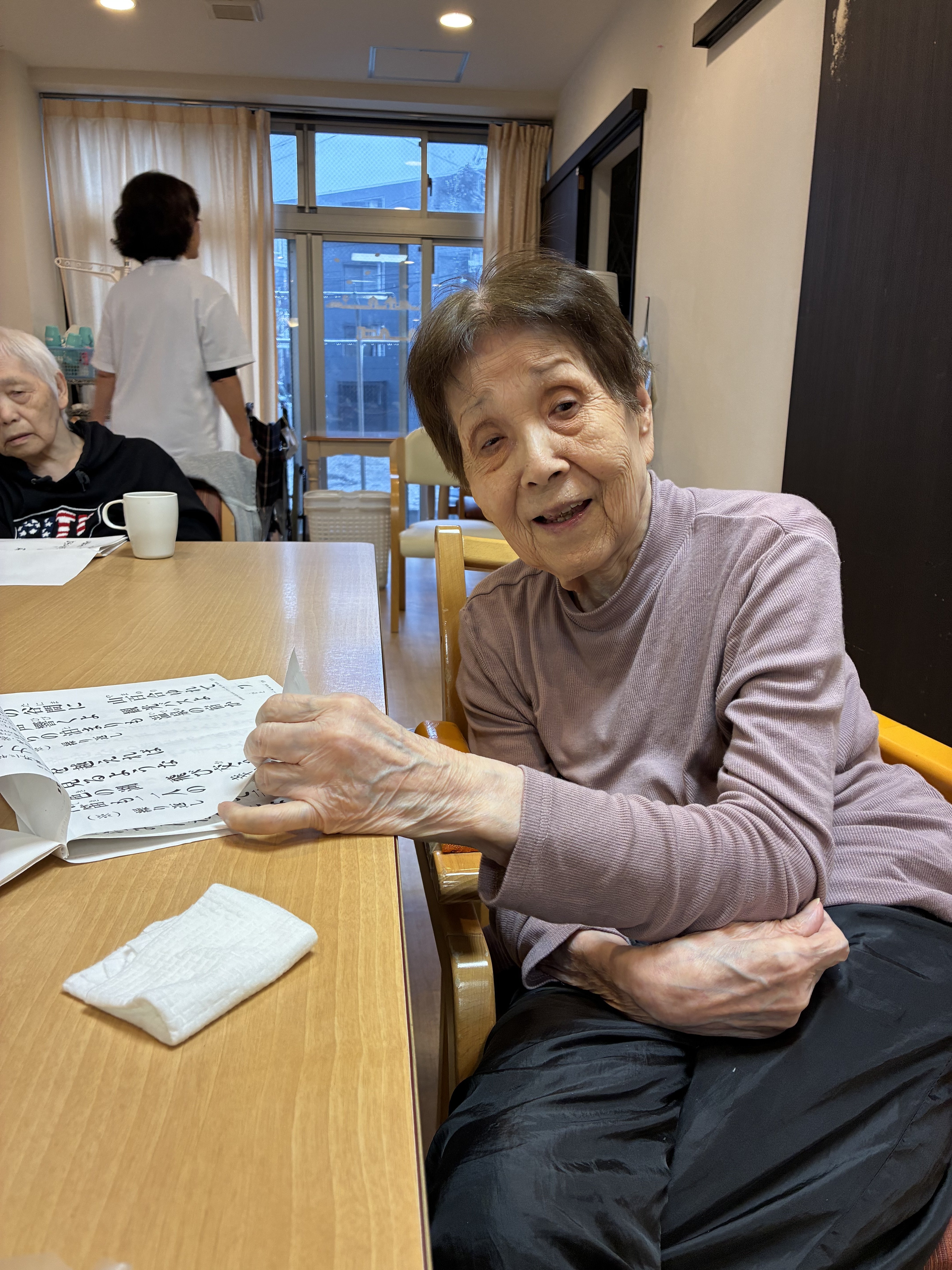 さて、午後のレクは皆様で歌謡曲を歌いました。