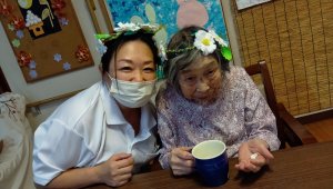 お花の冠をかぶっています!!